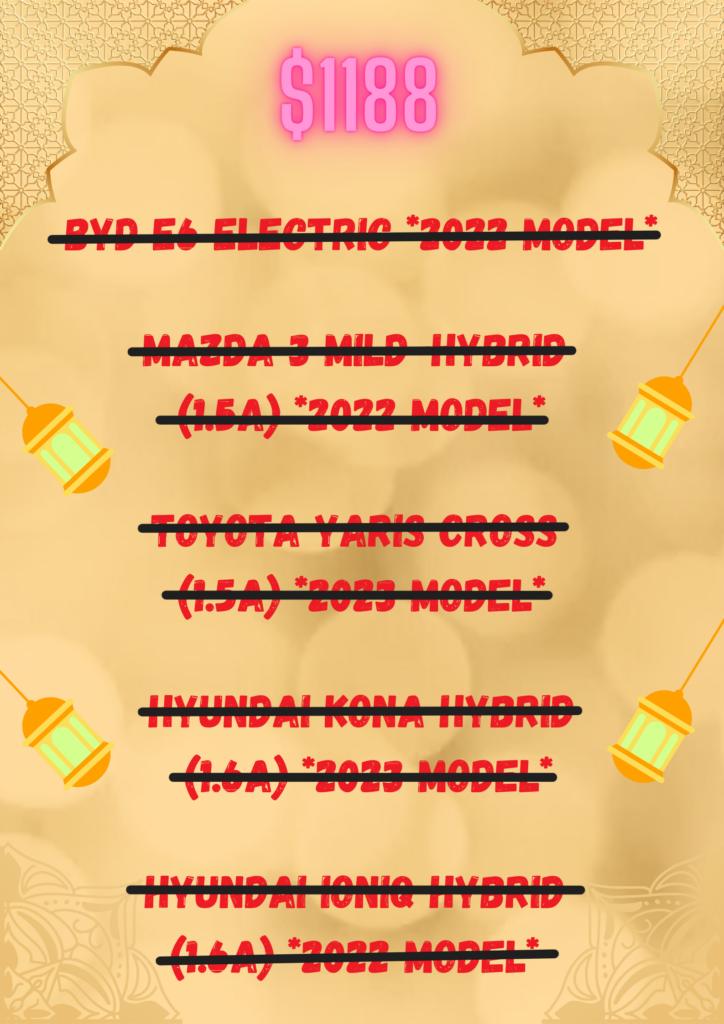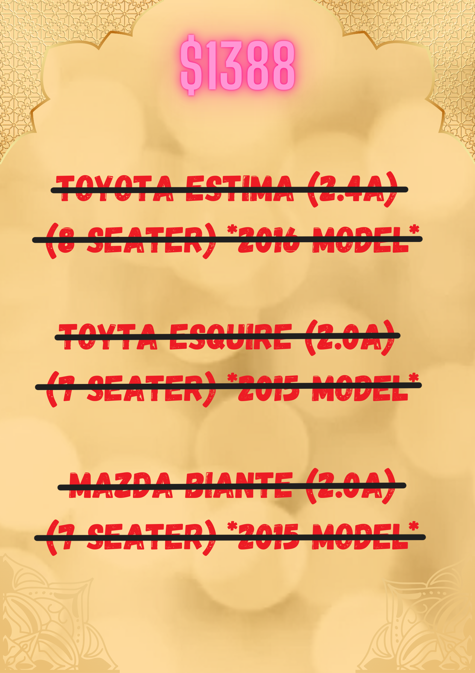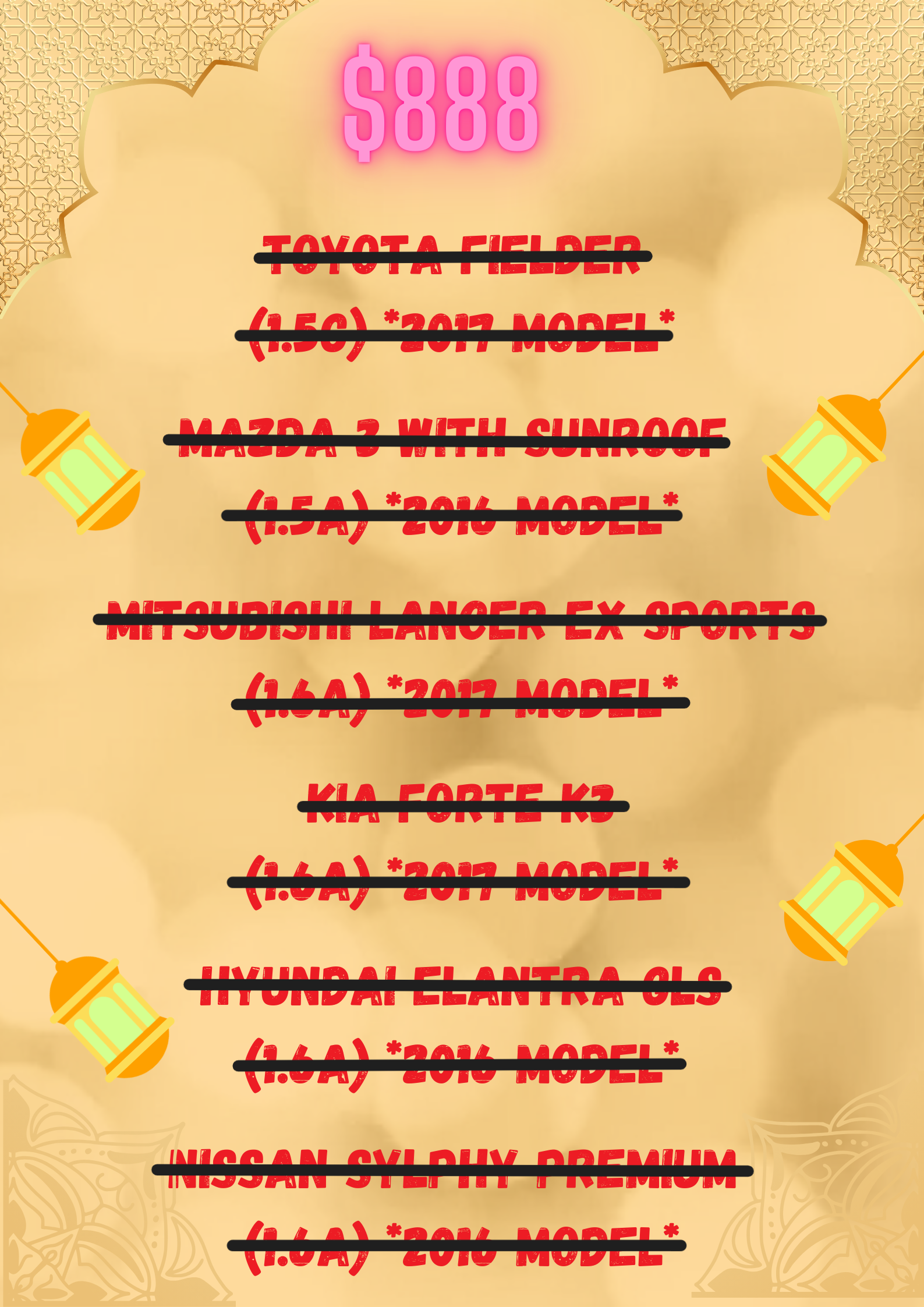 Festive Promo Embrace the holiday spirit with our exclusive festive promotions on your next car rental! Taking you anywhere you can imagine. Renting a car from us makes travelling around easier Rent Online Give us a call: +65 9845 1151